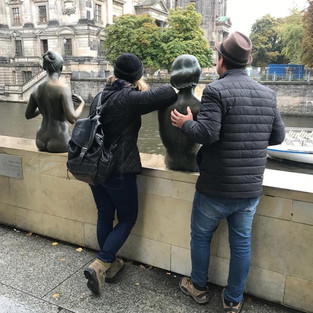 As esculturas de bronze espalhadas pelos jardins são maravilhosas. Gostei especialmente do Leão, do escultor August Gaul, e da Arqueira Diana, de Ferdinand Lepke. Também é espetacular o conjunto de esculturas Three Girls and a Boy, que retrata quatro figuras sentadas sobre a balaustrada, admirando o Rio Spree.
